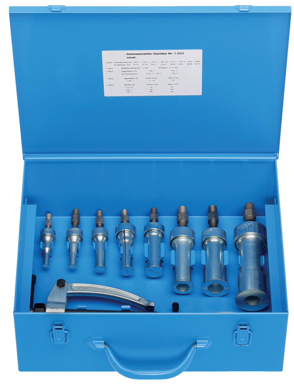 Sets with internal extractors, counter supports, puller chucks, external extractors and stud extractors