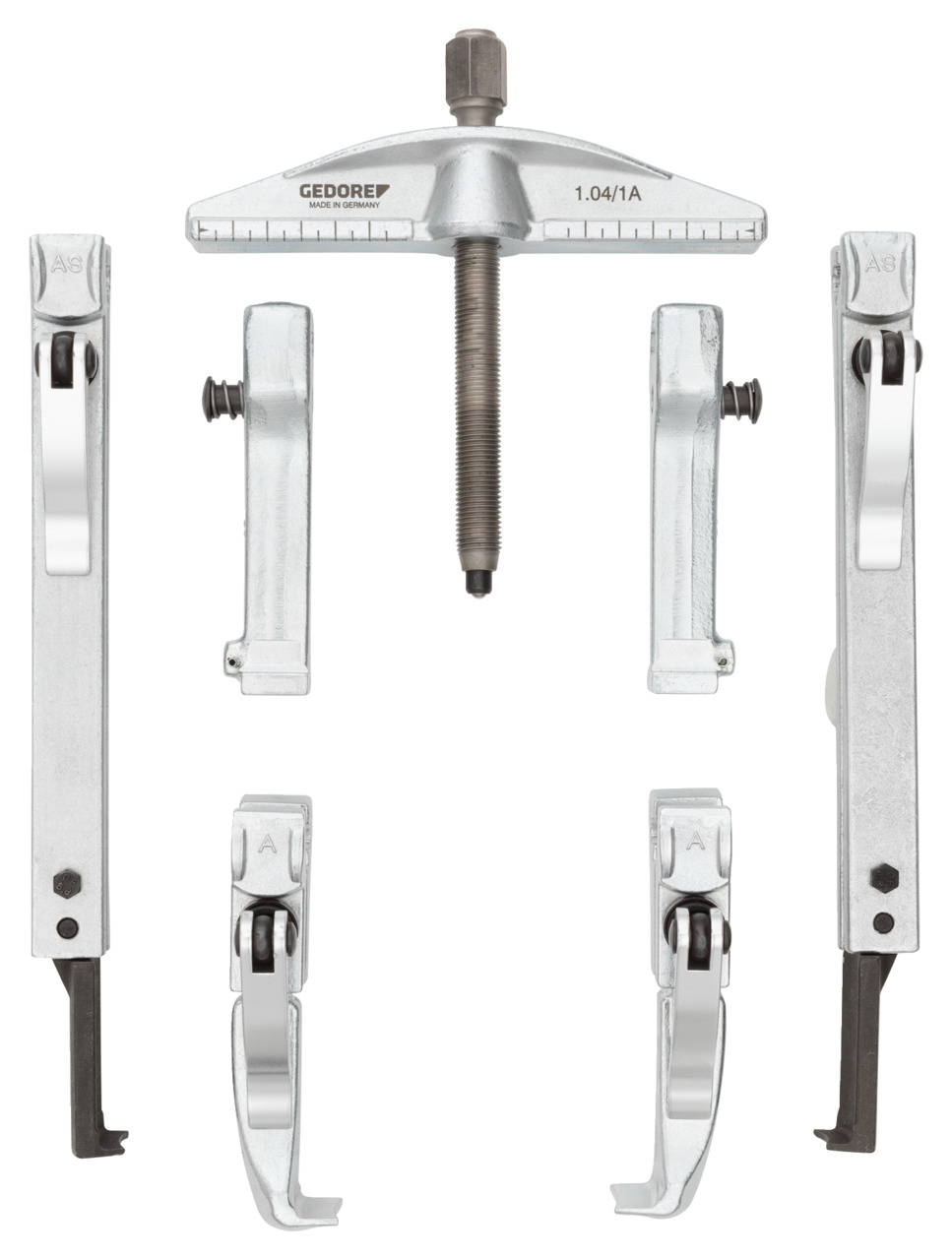 Universal set incl. 2-arm puller, extensions, leg lengths, hooked feet for internal and external pulling