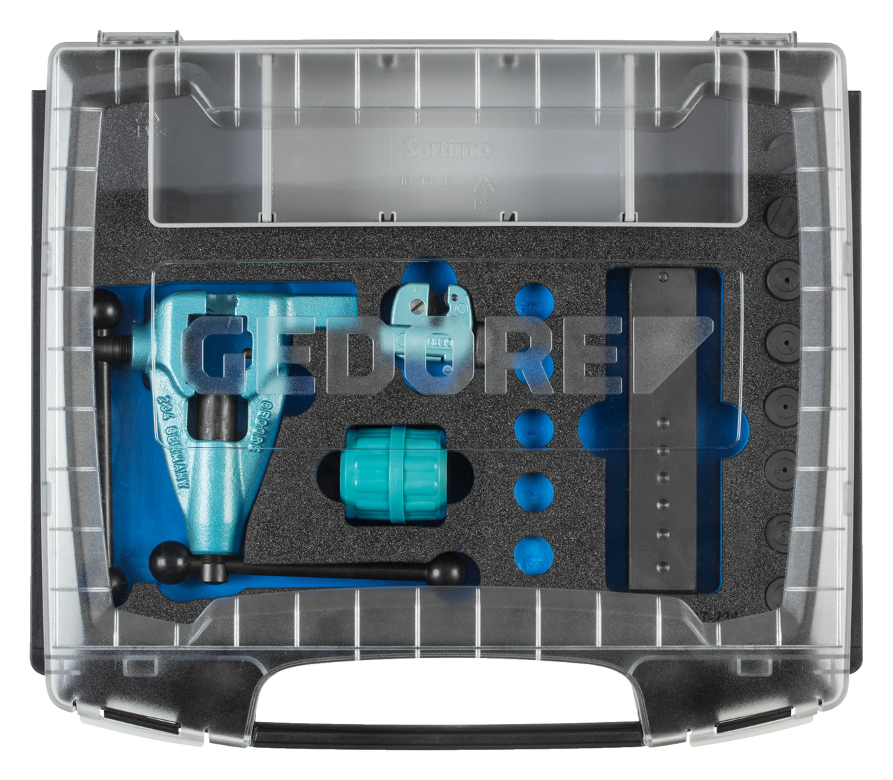 With pipe deburring reamer 4-32 mm Ø and miniature pipe cutter 4-16 mm Ø
