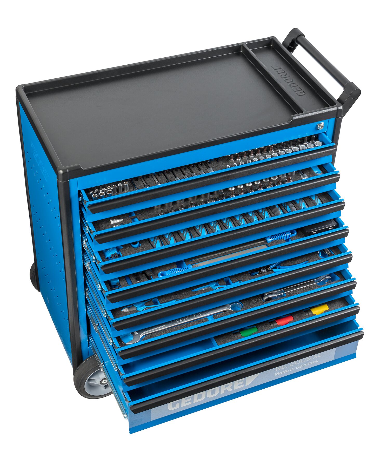 Fully equipped tool trolley for fast, organised and efficient repair and maintenance work in everyday workshop life