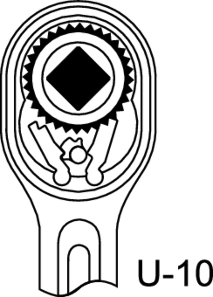 For hand-operated sockets and accessories with square drive as per DIN 3120 - C 6.3, ISO 1174, ball locking device