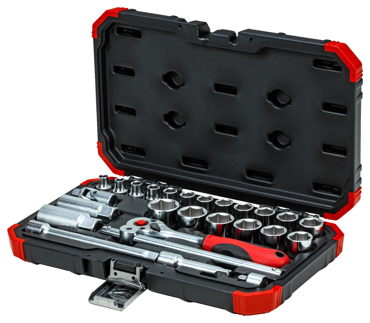 2C reversible ratchet 3/8", lever for reversing clockwise/anticlockwise direction, push-button release, fine-toothed, oval head, dual-material handle for ease in handling, for sockets