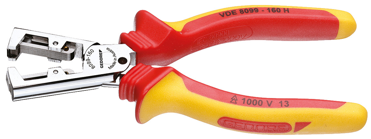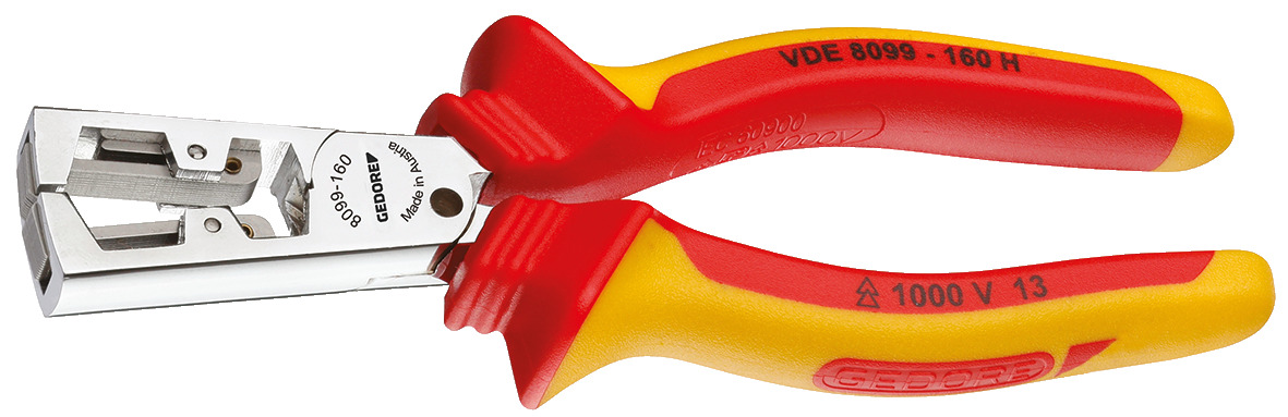 V-shaped cutting jaws for stripping the plastic insulation of single- and multi-core conductors
